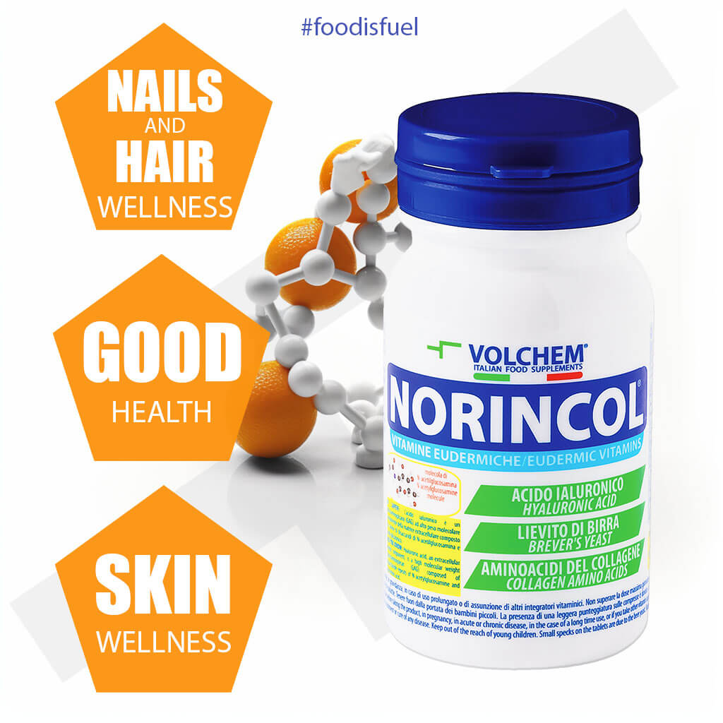 Go to cartNorincol® represents a step forward in the world of dietary supplements, carefully designed to promote the well-being and beauty of your skin. This tablet supplement offers a targeted combination of essential vitamins, highly concentrated hyaluronic acid, active brewer's yeast and collagen amino acids.